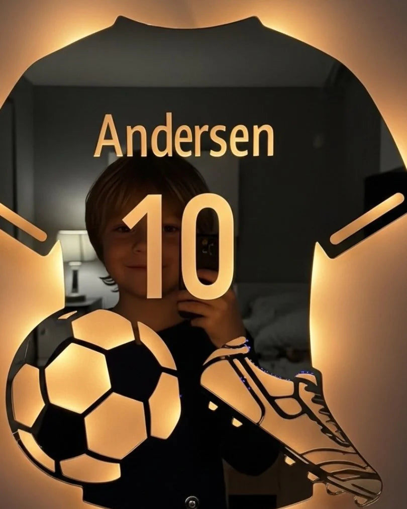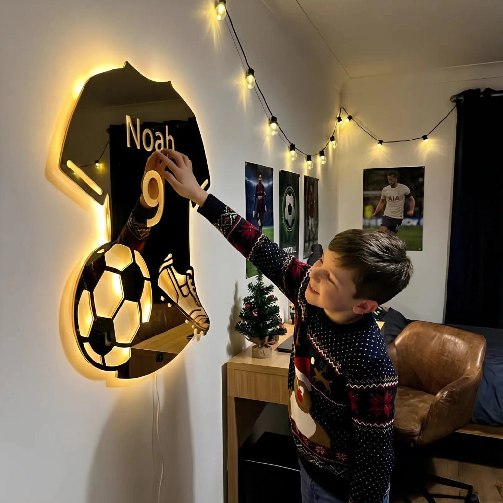 Cadeau original pour un enfant fan de foot. Le cadre est beau, la lumière douce, et la personnalisation fait vraiment son effet.
